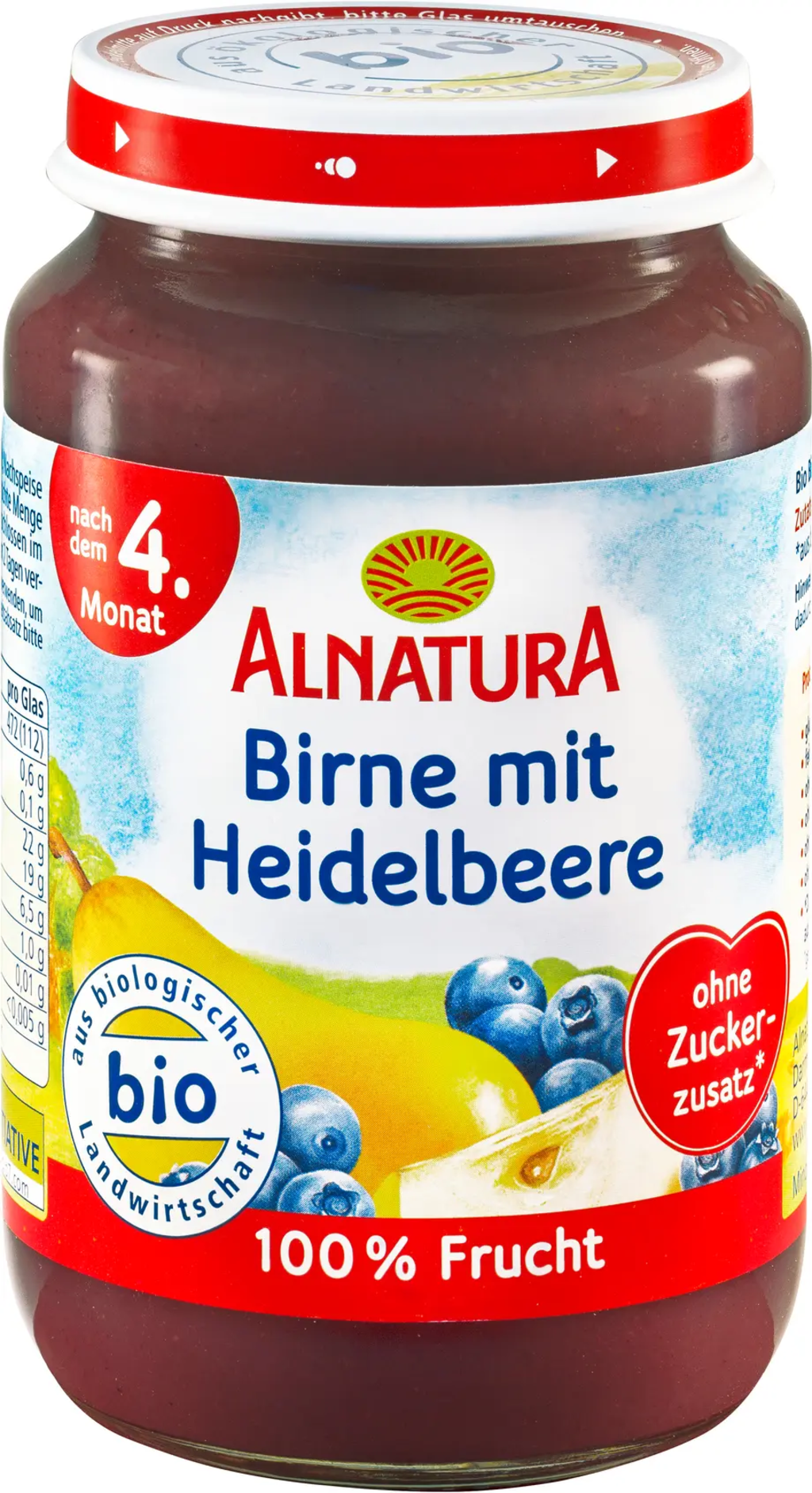 Alnatura Bio Babygläschen Birne mit Heidelbeere, 190 g