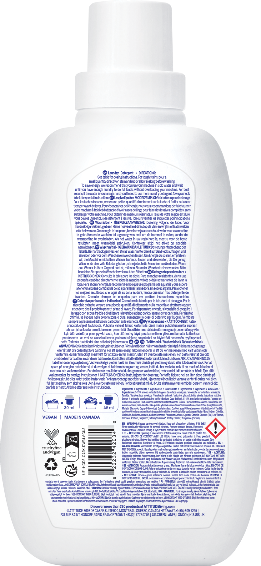 Natürlich wollen alle nur das Beste für die Familie. Deshalb bietet ATTITUDE ein Waschmittel, das natürlich und effizient hartnäckige Flecken auf der Wäsche bekämpft. Bei der Entwicklung wurde bewusst auf krebserregende Schadstoffe verzichtet.