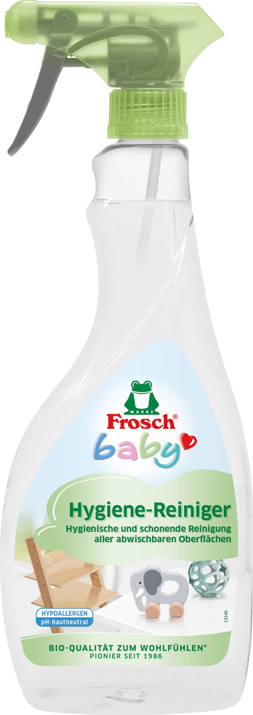 Mit dem Baby Hygienereiniger von Frosch sorgst du im Handumdrehen für strahlende Sauberkeit!