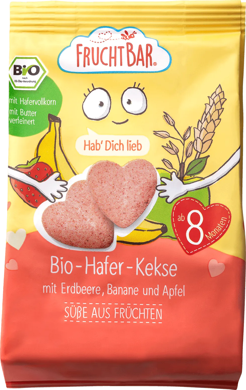 FruchtBar Bio-Hafer-Kekse mit Erdbeere-Banane-Apfel, 100 g