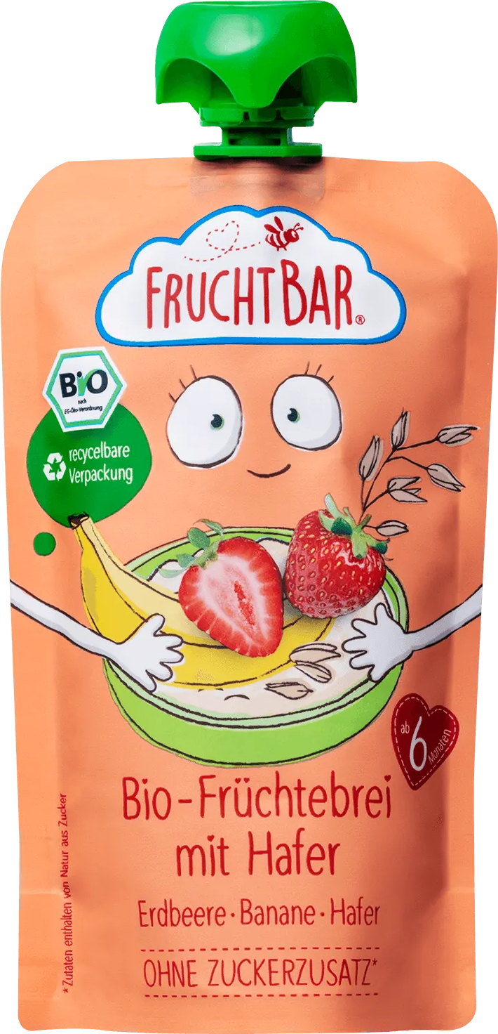 FruchtBar Bio Quetschie Früchtebrei mit Hafer, Erdbeere-Banane, 120 g