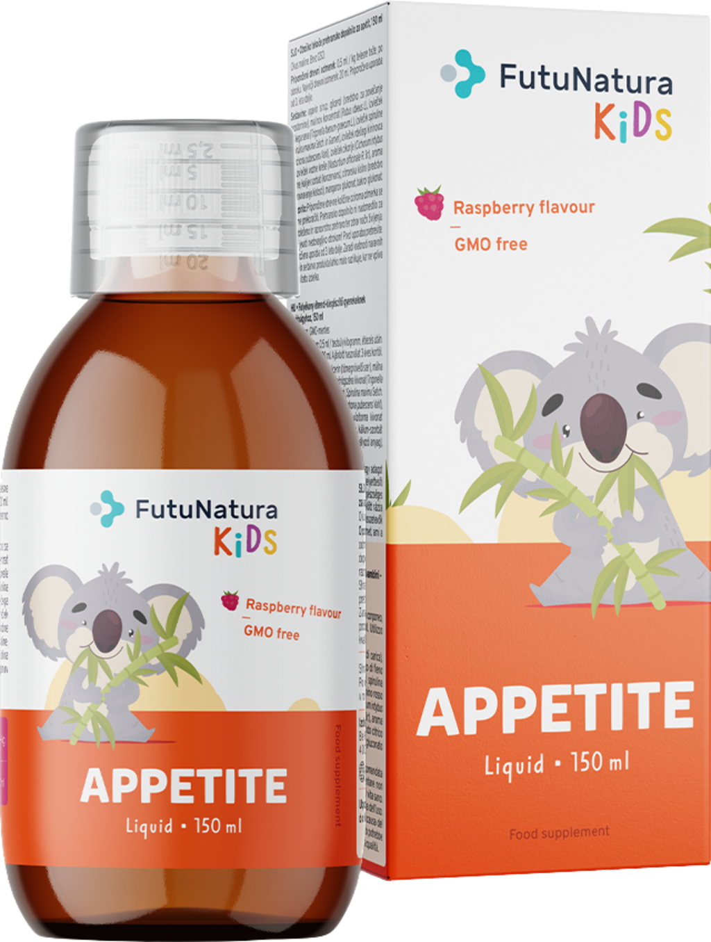 Appetite Liquid von FutuNatura Kids basiert auf Agavendicksaft. Die Flüssigkeit ist mit einigen Pflanzenextrakten angereichert, unter anderem Bockshornklee-Extrakt und Spirulina. Zudem sind auch Kupfer und Mangan enthalten. Appetite Liquid ist frei von Gentechnik. Die Flüssigkeit lässt sich leicht dosieren (je nach Gewicht des Kindes).