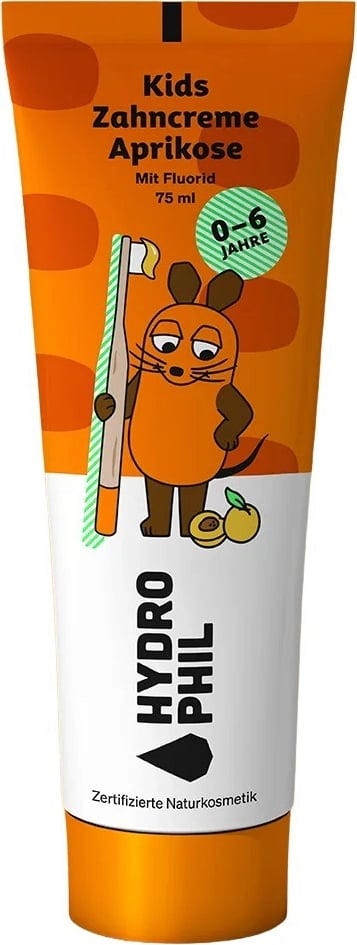 Zähneputzen mit der Maus? Die fruchtige Zahncreme von Hydrophil mit Aprikosengeschmack überzeugt sogar die Kleinsten und sorgt für gesunde und starke Zähne. Die Rezeptur wurde speziell für Kinder entwickelt, enthält Fluorid und schützt vor Karies. Die Zähne werden dabei sanft gereinigt, ohne den noch sehr empfindlichen Zahnschmelz anzugreifen.