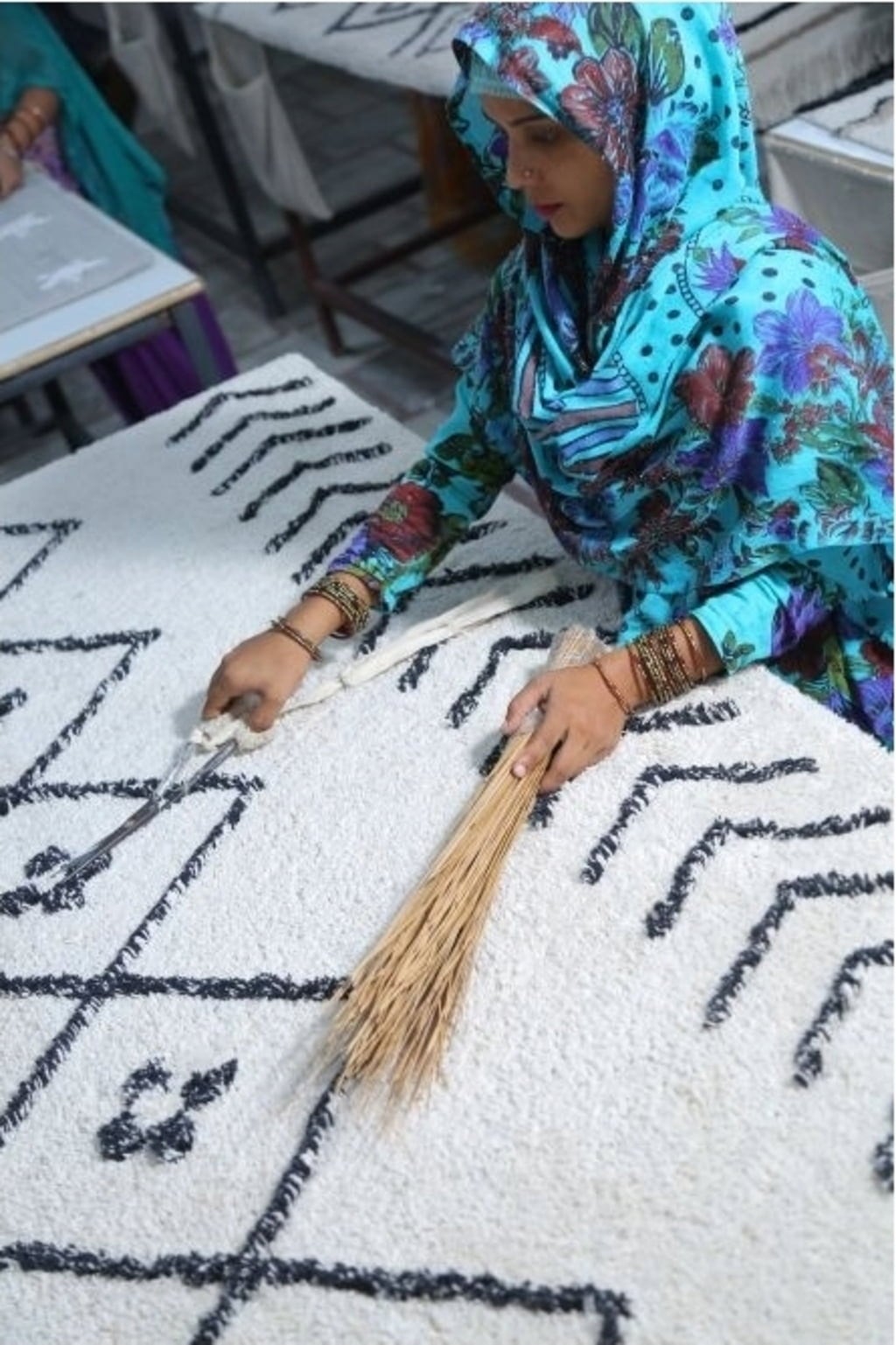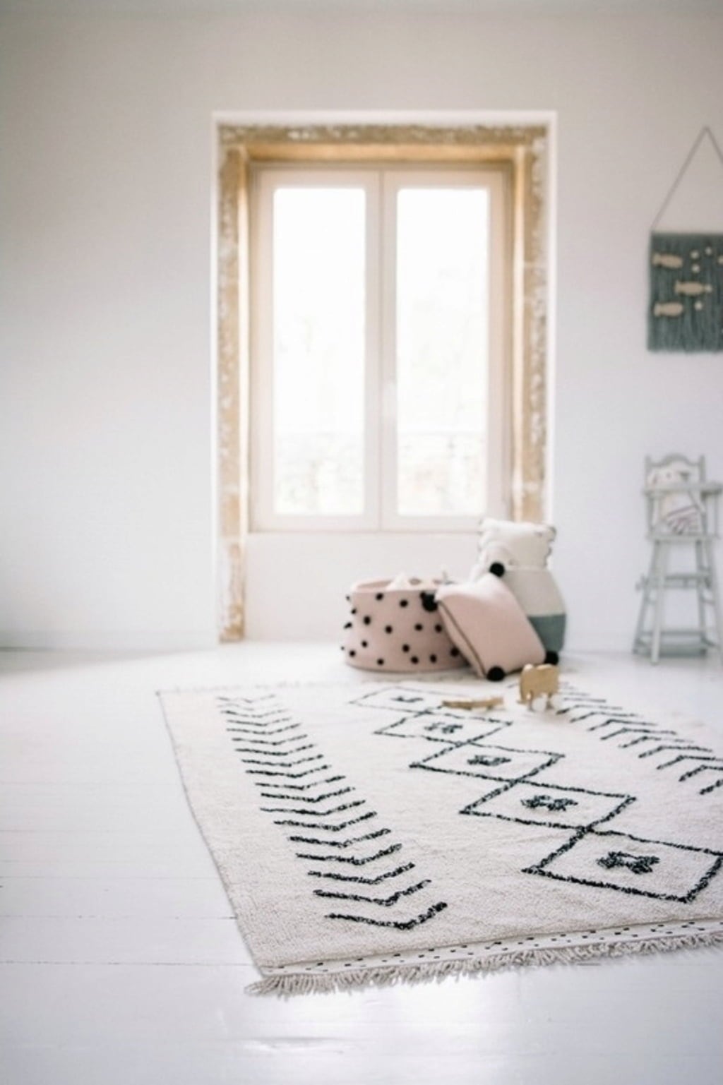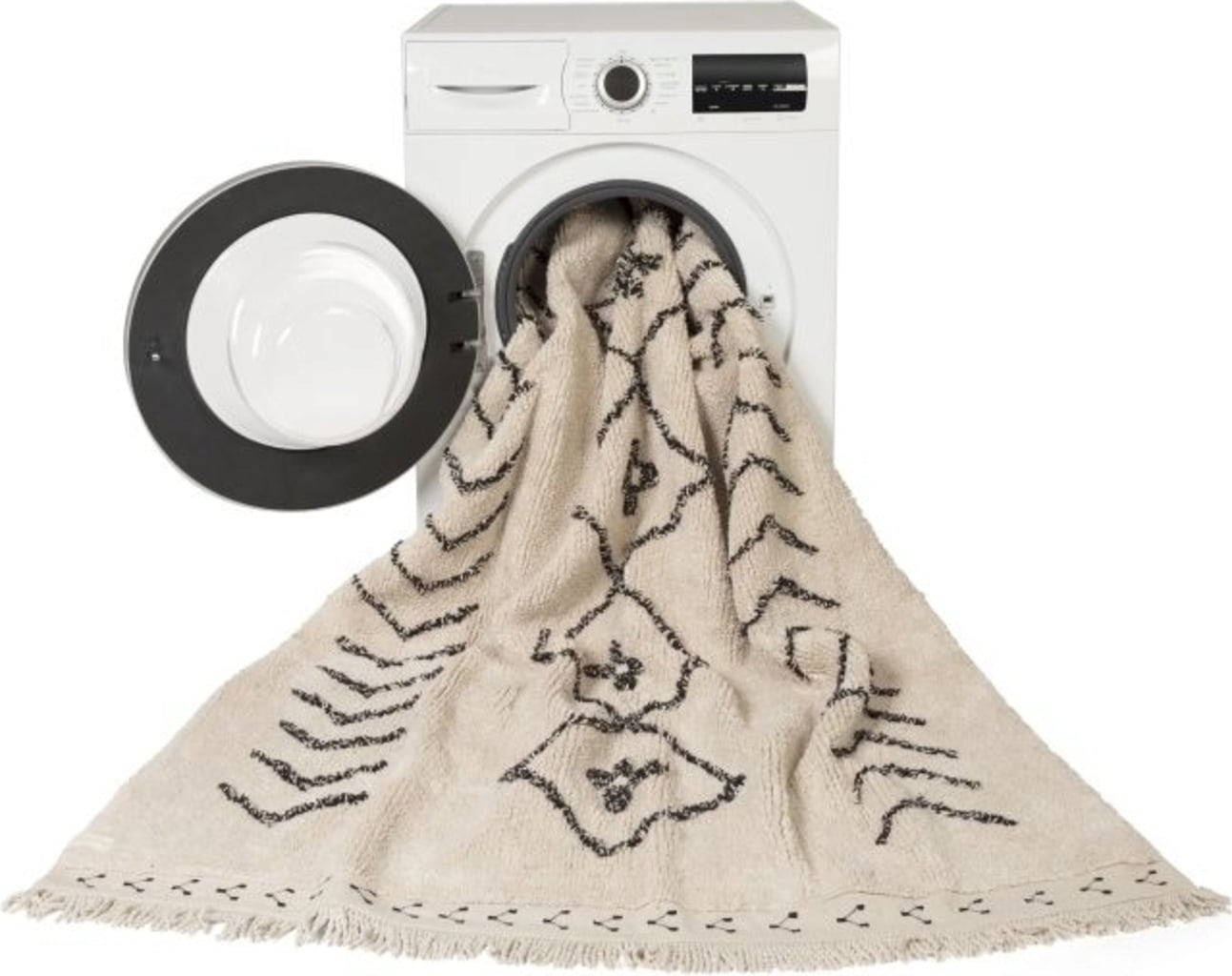 Dieser wunderschöne, aufwendig von Hand gefertigte Teppich im Berber-Stil ist gleichermaßen elegant wie vielseitig und begeistert mit seinem zeitlosen Design. Das schwarze Muster auf beigem Untergrund sorgt für die unvergleichliche Optik dieses außergewöhnlichen Teppichs aus reiner Baumwolle. So passt er in Schlaf- und Wohnzimmer genauso gut wie in Esszimmer und setzt auch auf Terrassen einen einzigartigen Akzent.