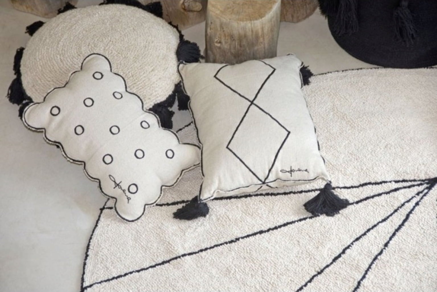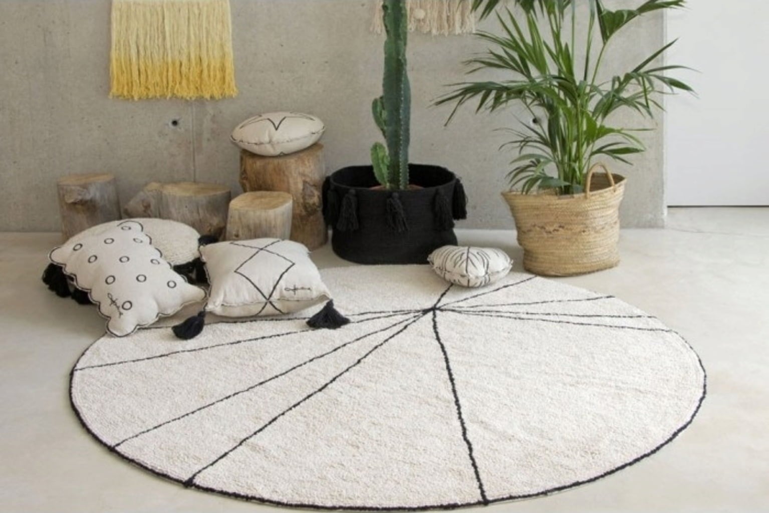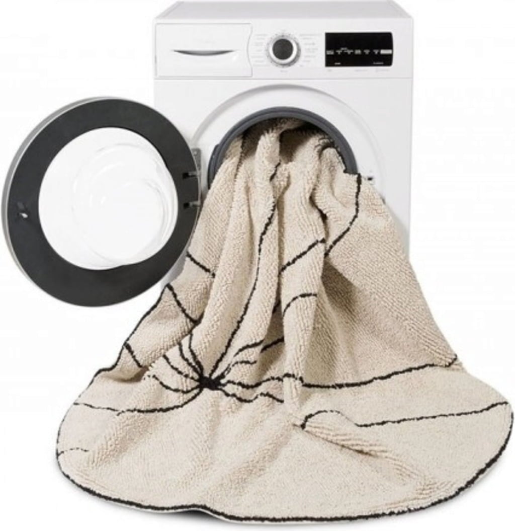 Lorena Canals Runder Baumwoll-Teppich Trace, Natural, Black