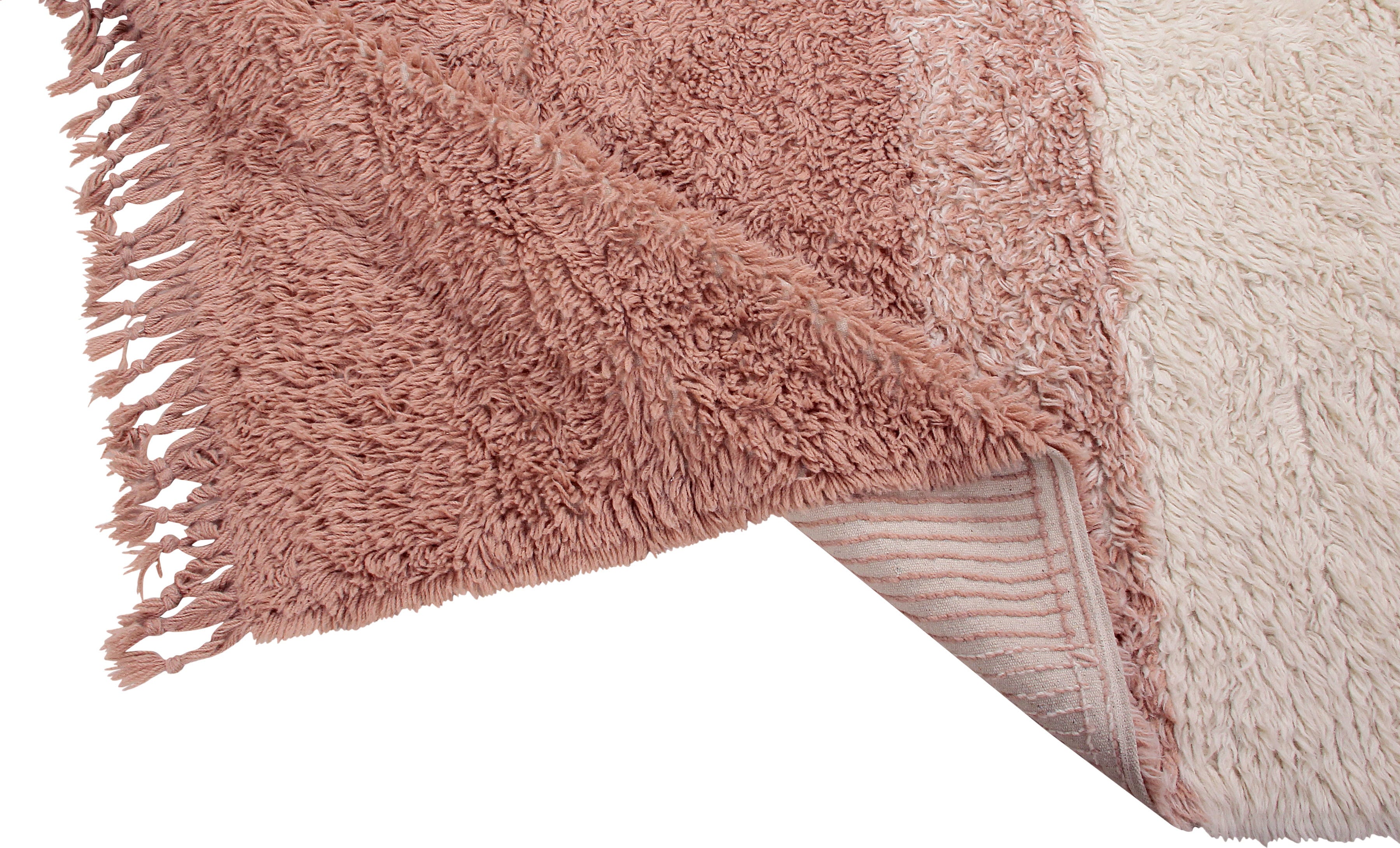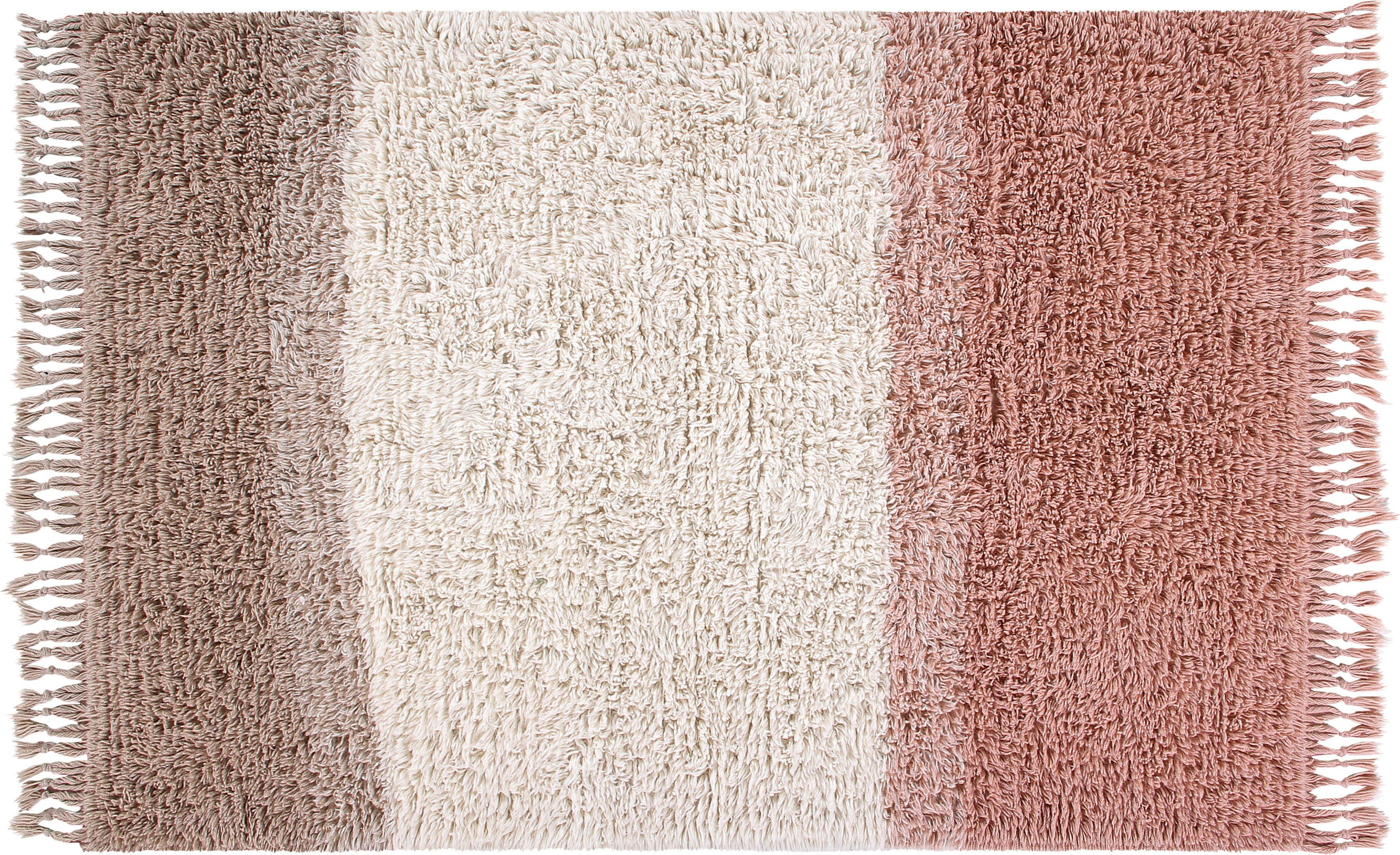 Der von Hand geknüpfte Teppich aus reiner, weicher Wolle bringt ein angenehm-leichtes Sommerfeeling in dein Zuhause. Sein dezent-zurückhaltendes Design in wunderbar natürlichen Farbtönen sorgt für behagliche Gemütlichkeit und harmoniert wunderbar mit jeglicher Wohnumgebung. Die kunstvoll über kreuz geknüpften Fransen an den Rändern verleihen ihm ein attraktives & dekoratives Finish - Ein stilvoller Blickfang in modern-puristischem Look, der sich in allen Wohnräumen zuhause fühlt.