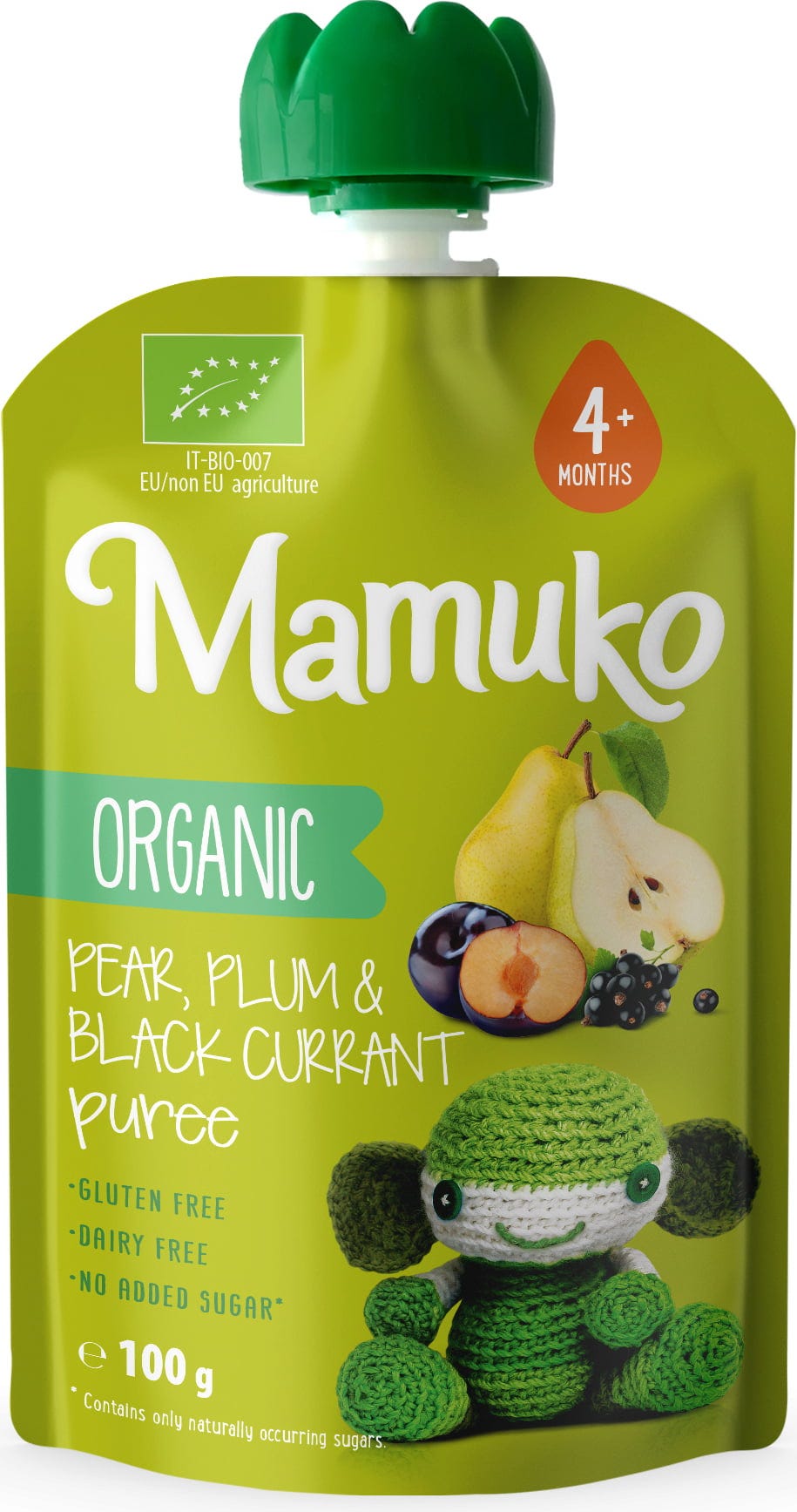 Mamuko Bio Organic Pear, Black Currant and Plum Puree, 100 g