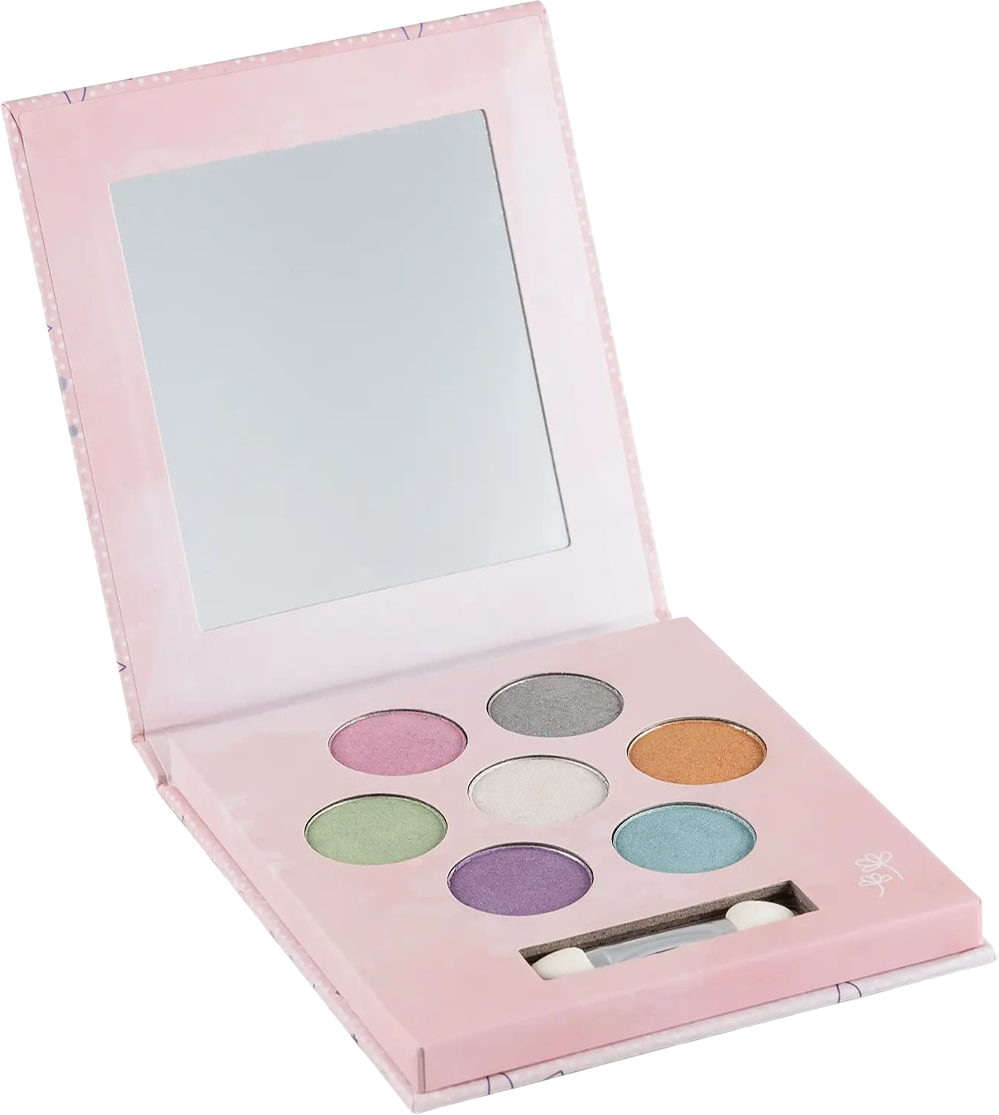 Dieses hübsche Set enthält neben einem Spiegel und einem weichen Applikator, sieben schimmernde Lidschatten. Sie sind bio-zertifiziert und angereichert mit Reis-Puder, welches den farbenfrohen Lidschatten eine hautfreundliche Textur verleiht. Das Set ist praktisch sowie einfach aufzubewahren und enthält alles, was kleine Damen benötigen, um märchenhaft schön auszusehen. Tauche ein in ein Traumland voll von Einhörnern und Glitzer!