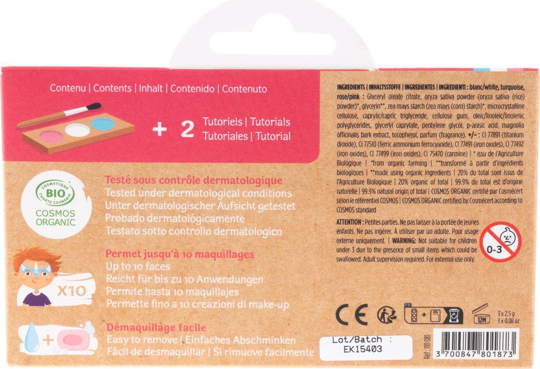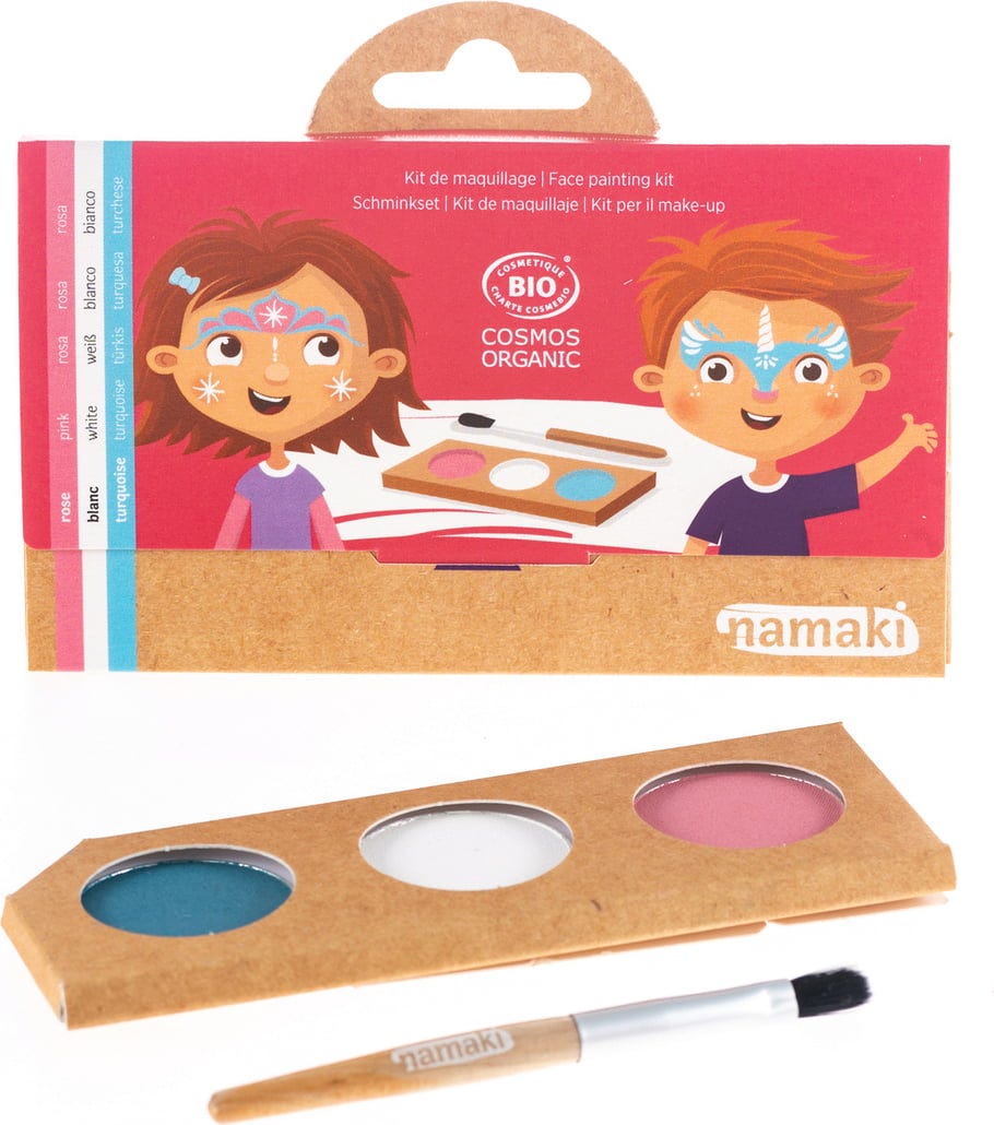 Verwandle dich in eine Prinzessin oder ein Einhorn! Die Farben Weiß, Rosa sowie Türkis und der Pinsel helfen dir dabei. Ihre Rezepturen sind hypoallergen und völlig unbedenklich für empfindliche Kinderhaut. Überdies lassen sich die Farben einfach abwaschen.