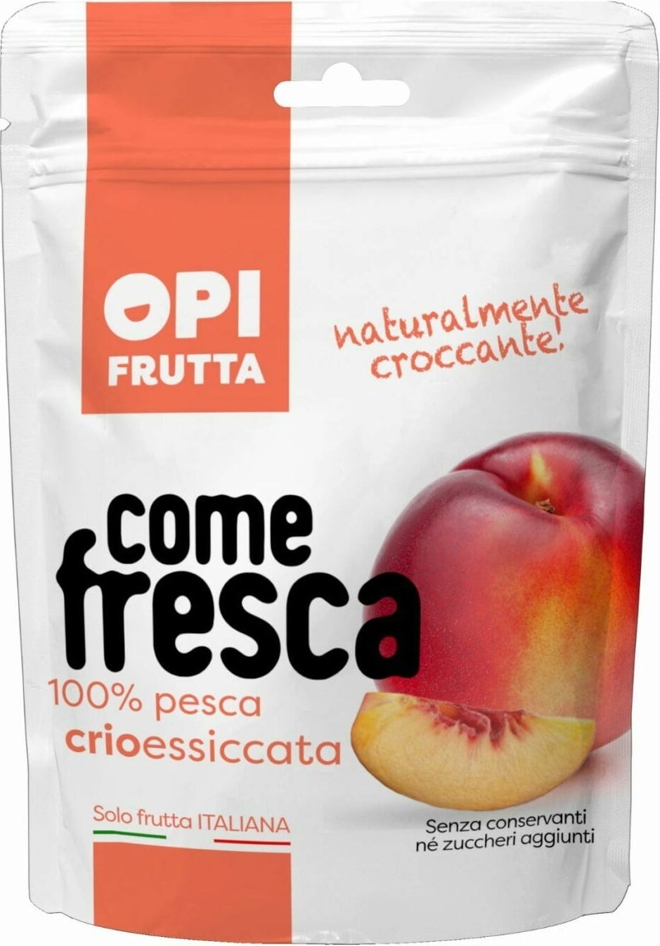Süß, saftig und voll sonniger Aromen: Die gefriergetrockneten Pfirsichscheiben von OPI FRUTTA bringen den Sommer in deine Snackbox – ganz ohne Zusatzstoffe. Die schonende Verarbeitung erhält wertvolle Vitamine und Mineralstoffe.