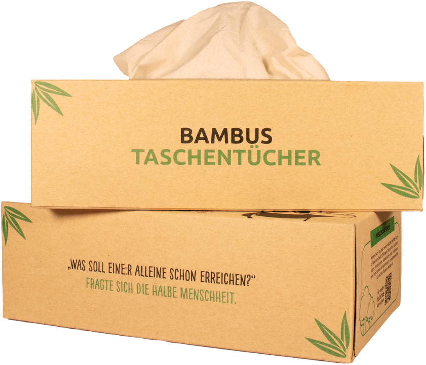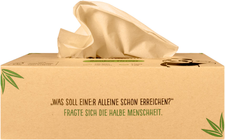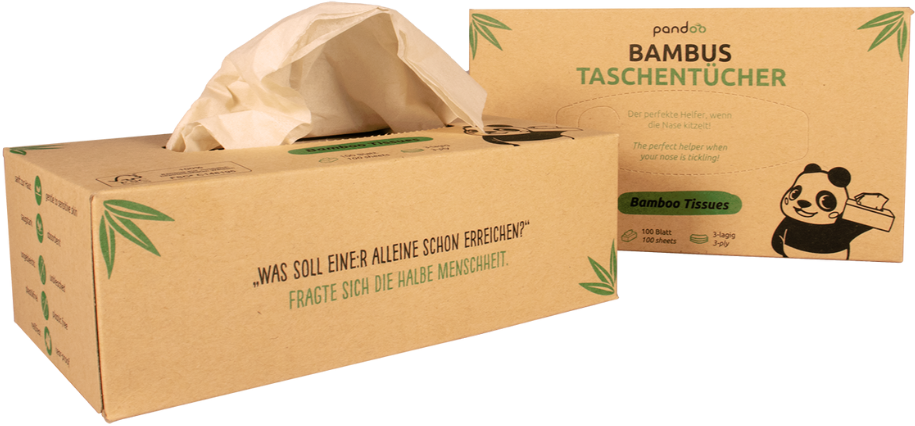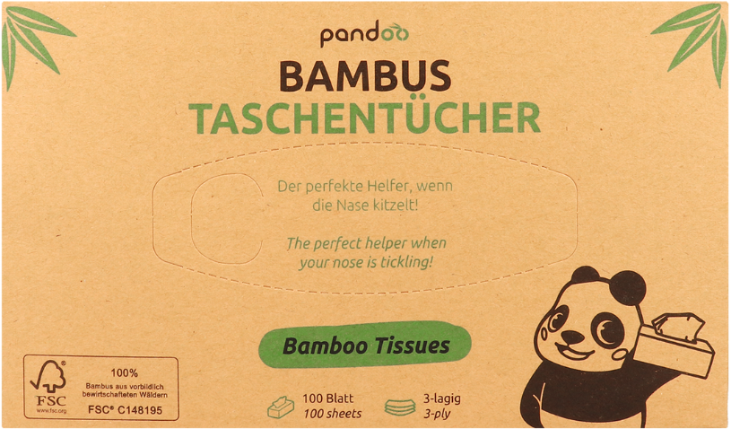 An jedem einzelnen Tag werden unzählige Bäume gefällt und verarbeitet, um unseren Bedarf an Hygieneartikeln, wie Toilettenpapier oder Taschentücher, zu decken - doch es gibt umweltfreundlichere und schlauere Alternativen! Bambus zum Beispiel. Er wächst sehr schnell und benötigt weniger Wasser als Holz. Deshalb werden die pandoo Taschentücher aus Bambus hergestellt. Sie sind frei von Holz, Kunststoff und völlig ungebleicht. Dennoch sind sie besonders weich und damit auch sanft zu Schnupfnasen sowie empfindlicher Haut.