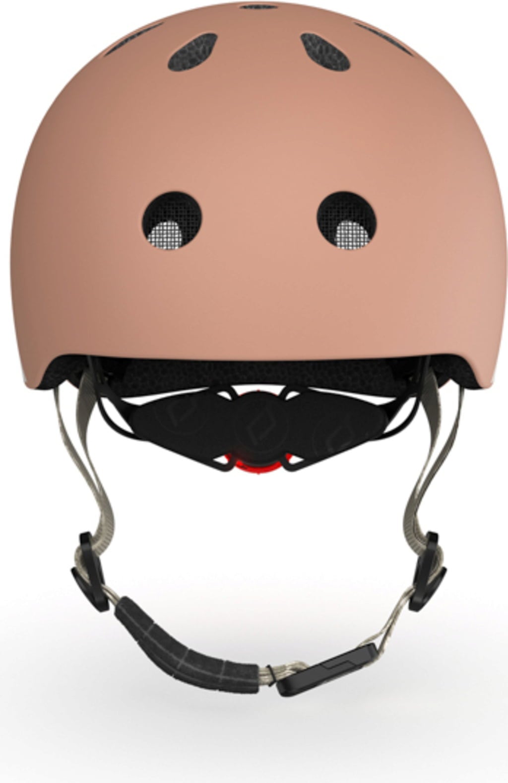 Der Scoot and Ride Kinderhelm in Größe S passt sich dank des stufenlosen Größenverstellsystems am Hinterkopf optimal an den Kopfumfang (51–55 cm) deines Kindes an und sorgt jederzeit für sicheren Halt. Das integrierte batteriebetriebene LED-Licht am Verstellrad erhöht die Sichtbarkeit bei Dämmerung oder schlechtem Licht – für mehr Sicherheit im Straßenverkehr.
