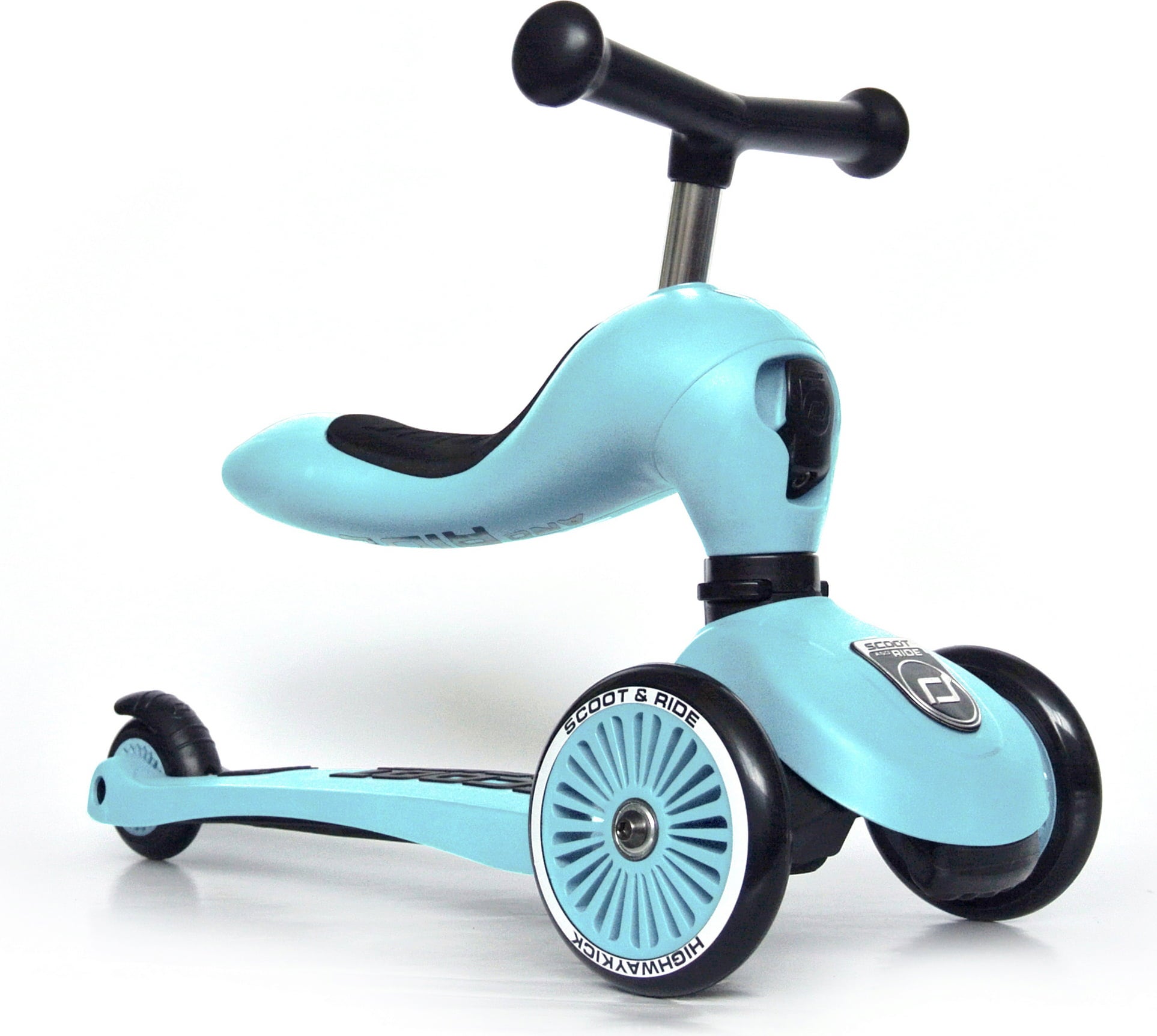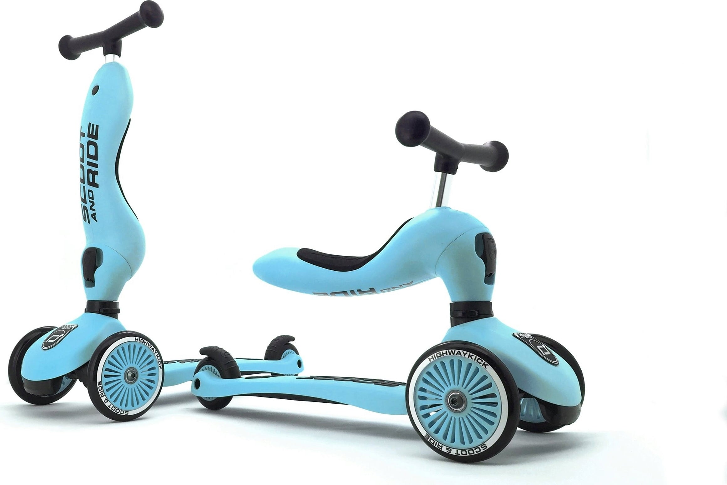 Mit dem Highwaykick 1 von SCOOT AND RIDE können schon die Kleinsten richtig auf die Tube drücken. Das Rutschfahrzeug besitzt eine niedrige Sitzhöhe, die sich aber auf drei verschiedene Stufen einstellen lässt. Doch das Beste ist: Mit nur einem einzigen Handgriff wird aus dem Fahrzeug ein Roller! Auch hier kann die Höhe des Lenkers 3-stufig verstellt werden - ganz ohne Werkzeug. Egal welche Variante man wählt, zwei Vorderräder und ein Hinterrad bieten viel Stabilität. Das spezielle Safety-Pad sorgt dafür, dass man beim Fahren nicht nach vorne kippt.