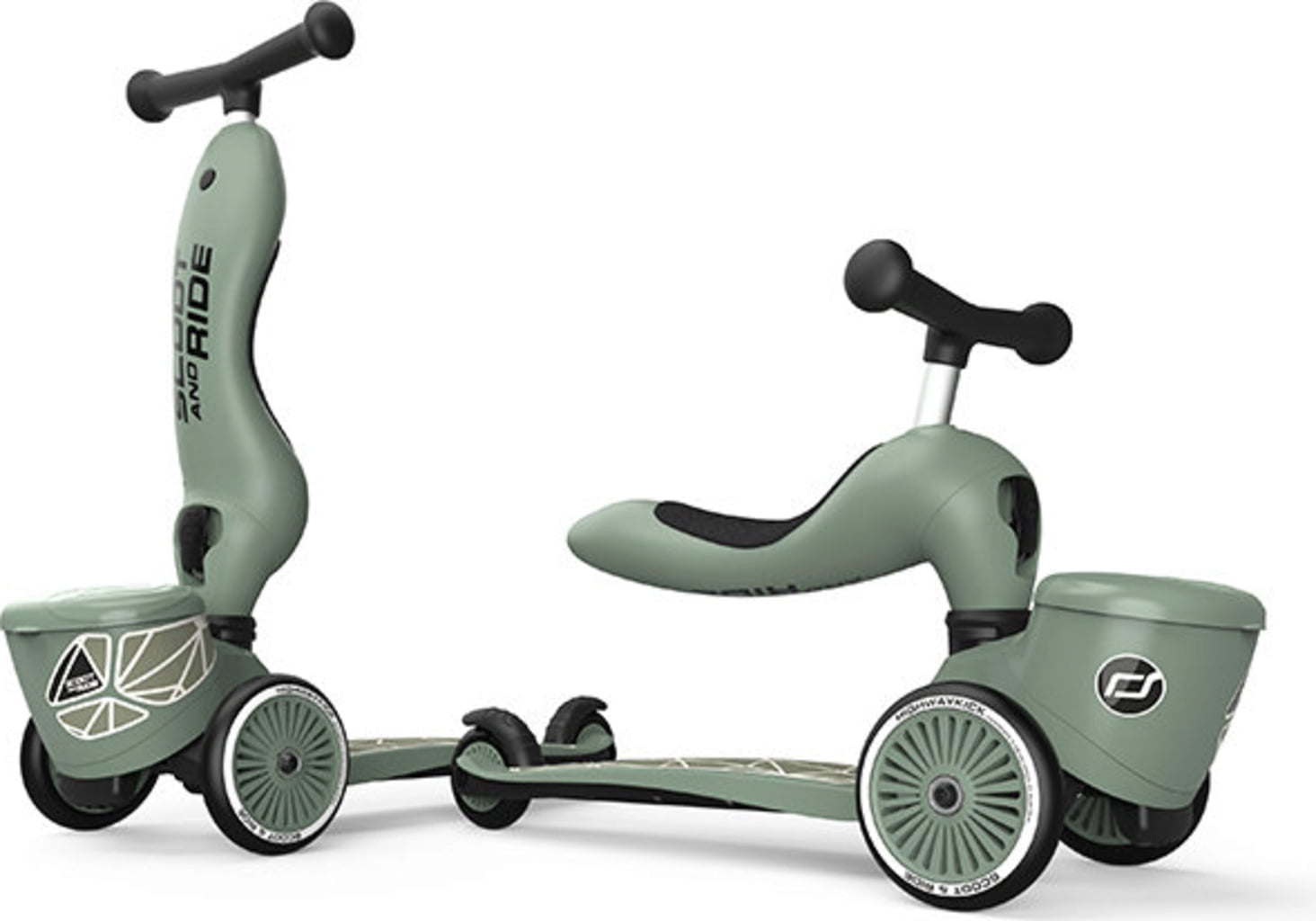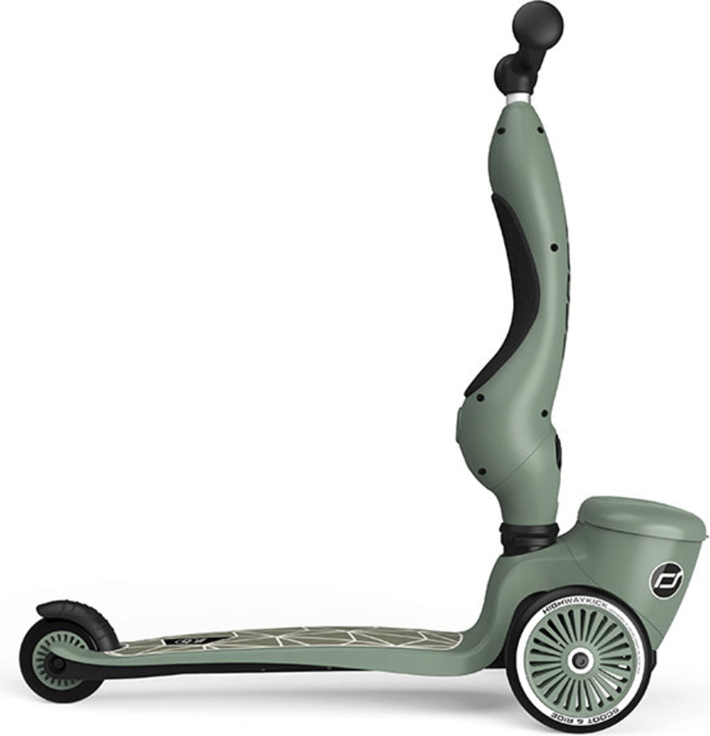 Rutschfahrzeug oder Roller - warum denn nicht beides?! Der Highwaykick 1 Lifestyle verwandelt sich sekundenschnell vom Rutschfahrzeug mit extra niedriger Sitzhöhe in einen flotten Roller. Werkzeug wird dafür nicht benötigt! Weitere Vorteile sind die ausgezeichnete Stabilität dank drei hochwertiger PU Räder. Für Lieblingskuscheltier und Co. ist an der Front ein praktischer Behälter angebracht.