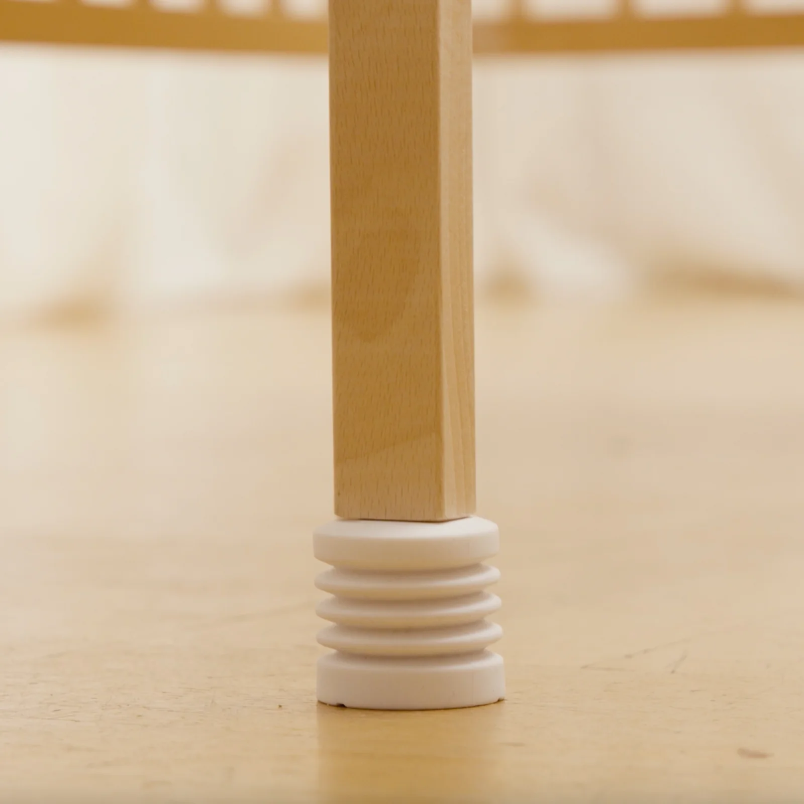 - Die Wippfüße werden festgeschraubt (ein Vorbohren ist erforderlich) und eignen sich ausschließlich für Kinderbetten mit Holzbeinen.
